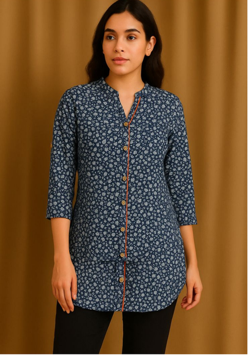 Agarwal Collection – Pink Printed Beaded Collar Shirt